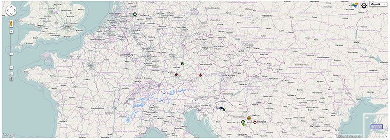 - Тренутну позицију сваког праћеног возила на мапи, те брзину и смер кретања сваког појединог возила